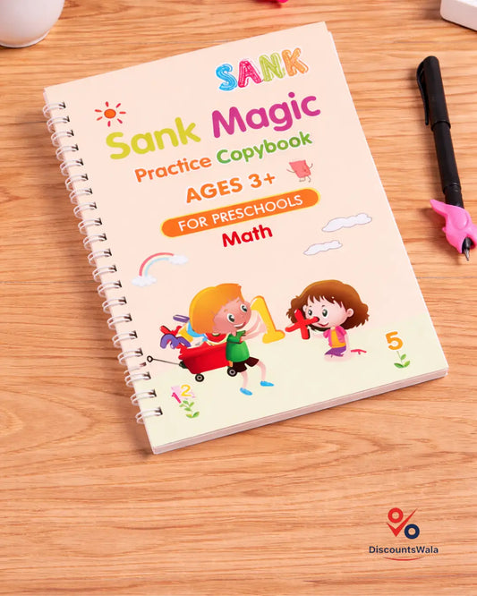 Reusable Magic Copybook Set for Kids – 4 Books (Drawing, Math, Alphabets, Numbers) + 1 Magic Pen + 10 Refills | Best Learning Gift for Toddlers Age 3+